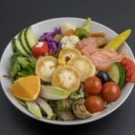 - Un filet de saumon frais, grillé à la plancha pour un goût légÚrement fumé