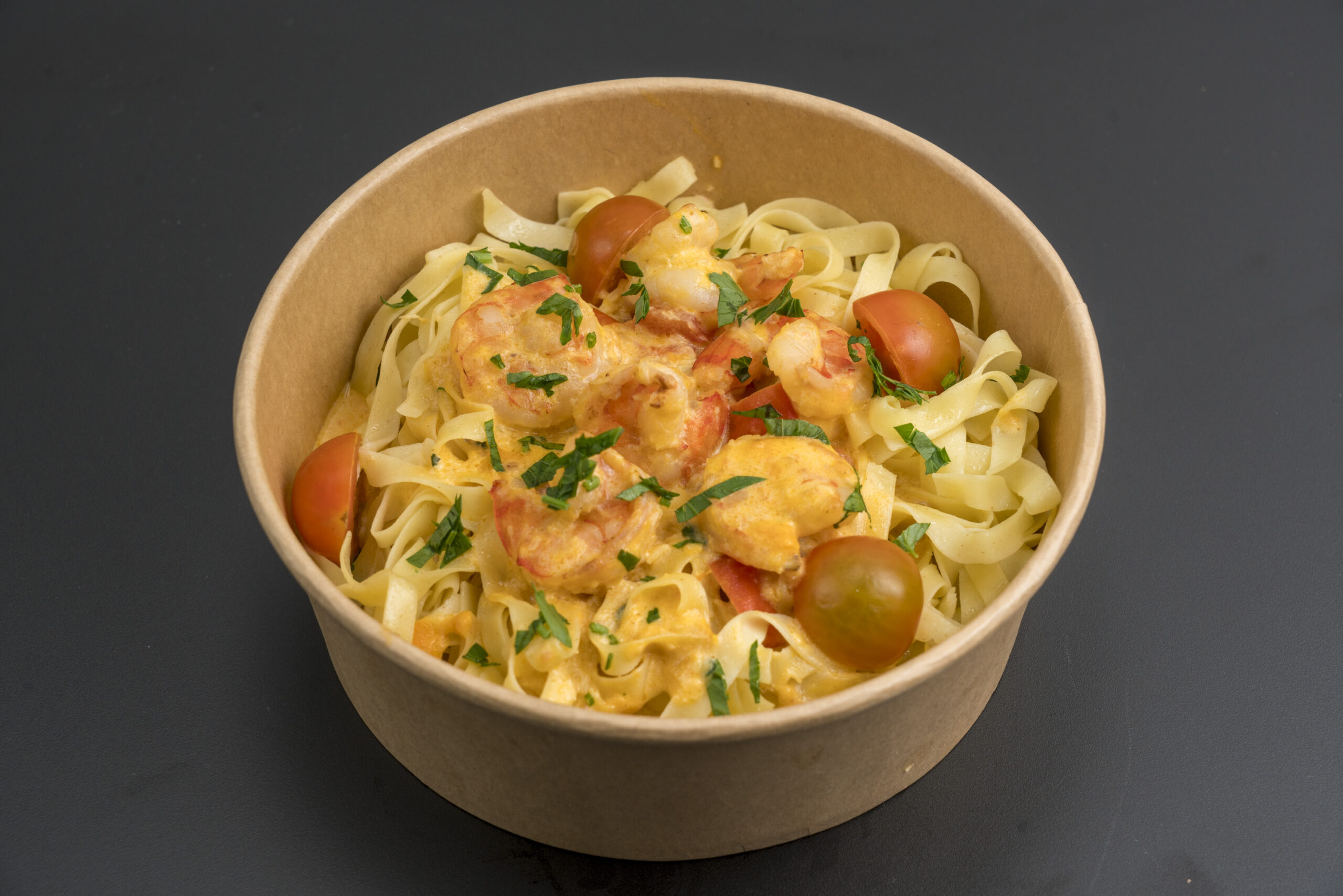 Tagliatelles aux scampis sauce curry doux et lait de coco, herbes fraiche