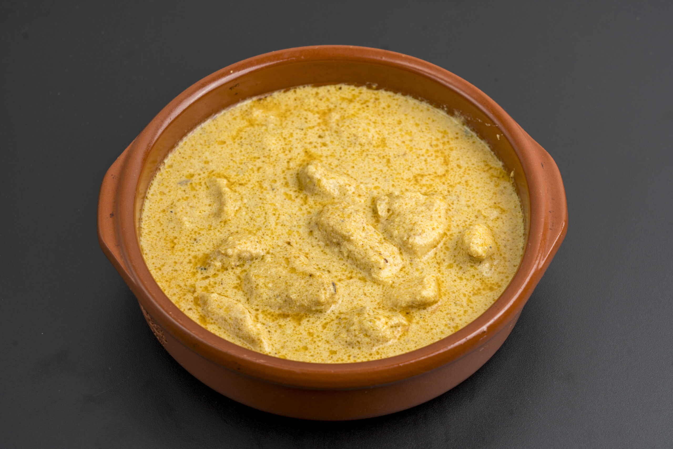 Poulet doux et crémeaux , préparé avec de la crème, du yaourt, de la noix de coco et des raisins secs.